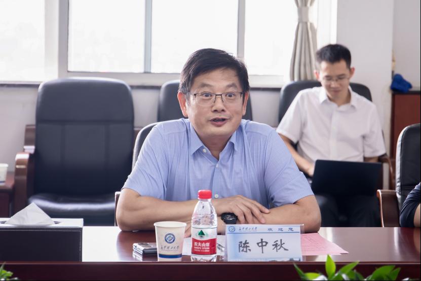 刘朝晖代表学校对陈中秋一行的到来表示热烈欢迎,并简要介绍了学校的历史沿革、师资队伍、教学科研等方面的基本情况,以及学校近年来在人才培养、产学研成果转化等方面取得的成绩。刘朝晖表示希望借此次交流的契机,进一步加强双方在项目研发、高质量就业、继续教育以及国际化等方面的合作。