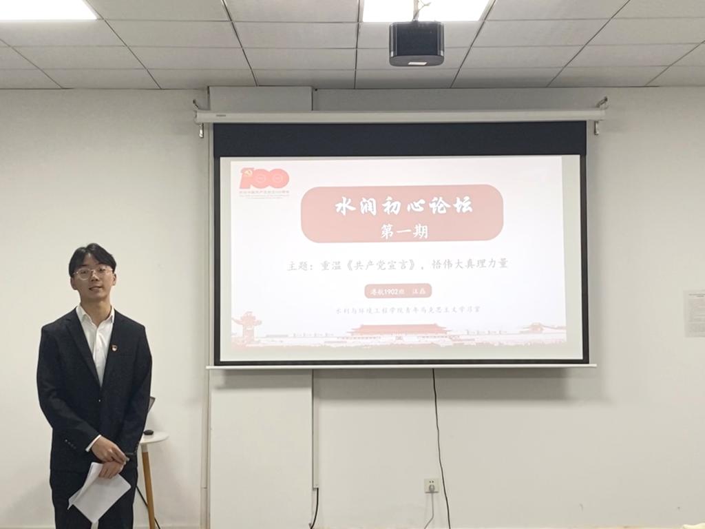 “重读经典,就是要用党的思想的源头活水滋润我们的初心。”12月13日,MG冰球突破官网水利与环境工程学院聚焦党史学习教育,开展水润初心理论学习论坛活动,重读《共产党宣言》,在学生专题汇报、师生共同研讨中感悟伟大的真理力量。学校关工委常务副主任王乃厚,学院党委副书记银波、关工委常务副主任曾令球等老师参加研讨。