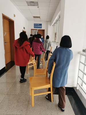 在支部书记邓婕的安排下,四支部党员们分为三个小组,分开对图书馆一至八楼各个阅览室进行巡查。党员们都按时到达所在小组,听从组长指挥,积极行动,尽管需搬移的椅子较多,但每位同志都不辞辛苦尽心尽力,动作迅速秩序井然,将多出来的凳子搬移到指定存放点,并摆放整齐。在调整凳子的同时不忘提醒自习的学生戴好口罩,做好个人防护。调整后的阅览室更加清净整洁,让来图书馆的读者更加放心。副馆长魏红梅在AB馆参加抗疫值班。