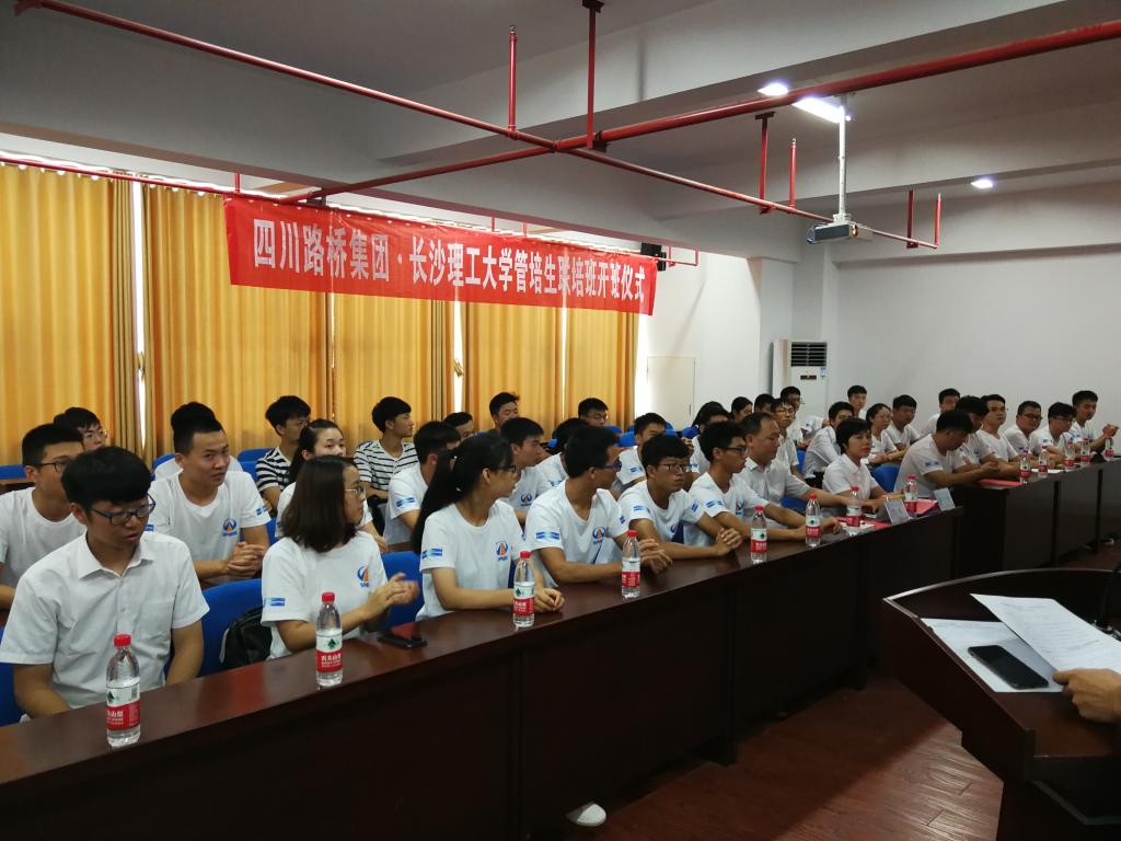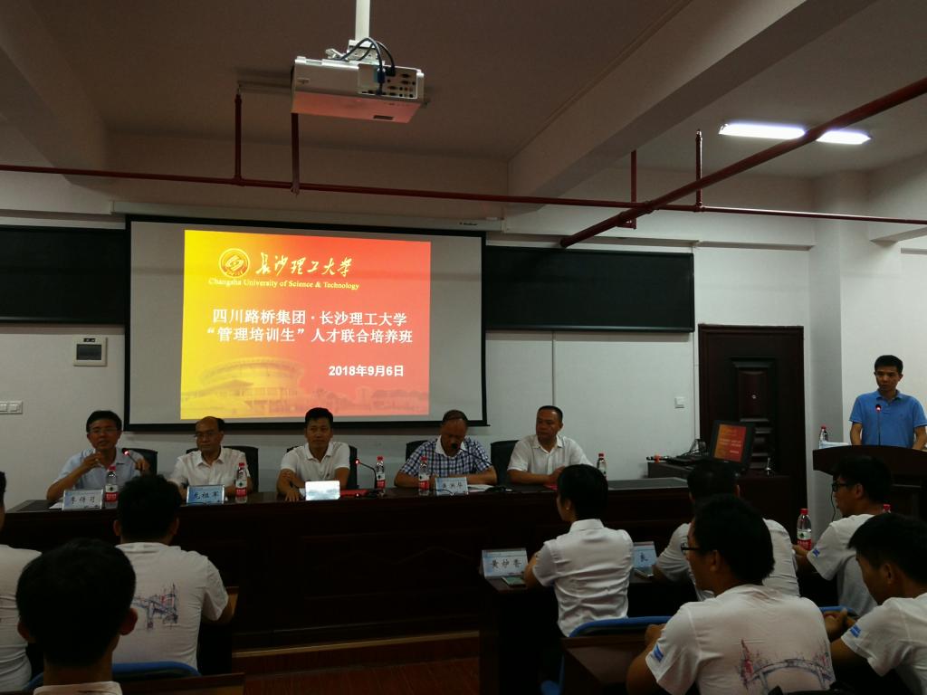 9月6日下午,由四川路桥集团与MG冰球官网联合举办,土木工程学院承办的首届“管理培训生”人才培养班开班仪式在云塘校区新能源大楼302会议室举行。四川路桥集团党委副书记黄洪华、人力资源部经理龙祖军、公路隧道分公司党委书记李平、人力资源部招聘处处长黄炉香,MG冰球官网副校长刘扬、土木工程学院院长李传习、招生就业处副处长贺良以及培训班全体学员共50余人出席了开班仪式。仪式由土木工程学院党委副书记、副院长王煜坤主持。