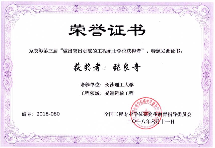 张良奇,2005年至2008年在MG冰球官网攻读交通运输工程领域工程硕士学位,校内指导教师为查旭东教授。现任河南万里路桥集团股份有限公司董事长。近年来,他获得省级科技成果5项,其中振动搅拌技术研发、应用两项成果被鉴定为国际领先;获得发明专利5项,其技术水平达到国内领先。近三年来先后获得许昌市第六届“最高科学技术成就奖”、“河南省优秀学术带头人”、“许昌市优秀科技创新领军人才”、“许昌市第十二批拔尖人才”等奖励和荣誉称号,2016年荣获国务院特殊津贴。