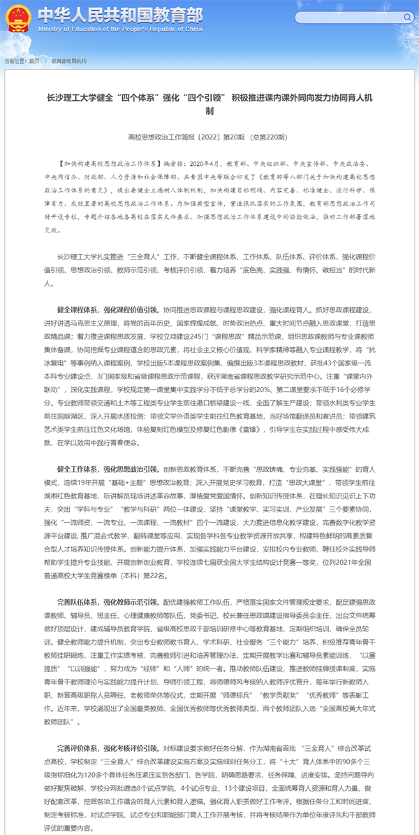 教育部思政简报:MG冰球突破官网健全“四个体系”强化“四个引领” 积极推进课内课外同向发力协同育人机制