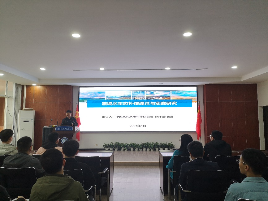4月27日上午,洞庭湖水环境治理与生态修复湖南省重点实验室在MG冰球官网云塘校区工三B319举办“走进洞庭”系列学术研讨会(第六场)。会议邀请到了来自中国水利水电科学研究院阮本清教授级高工,作了题为“流域生态补偿理论与实践研究”的学术报告。学校相关老师及研究生、本科生共60余人参加了此次研讨会。