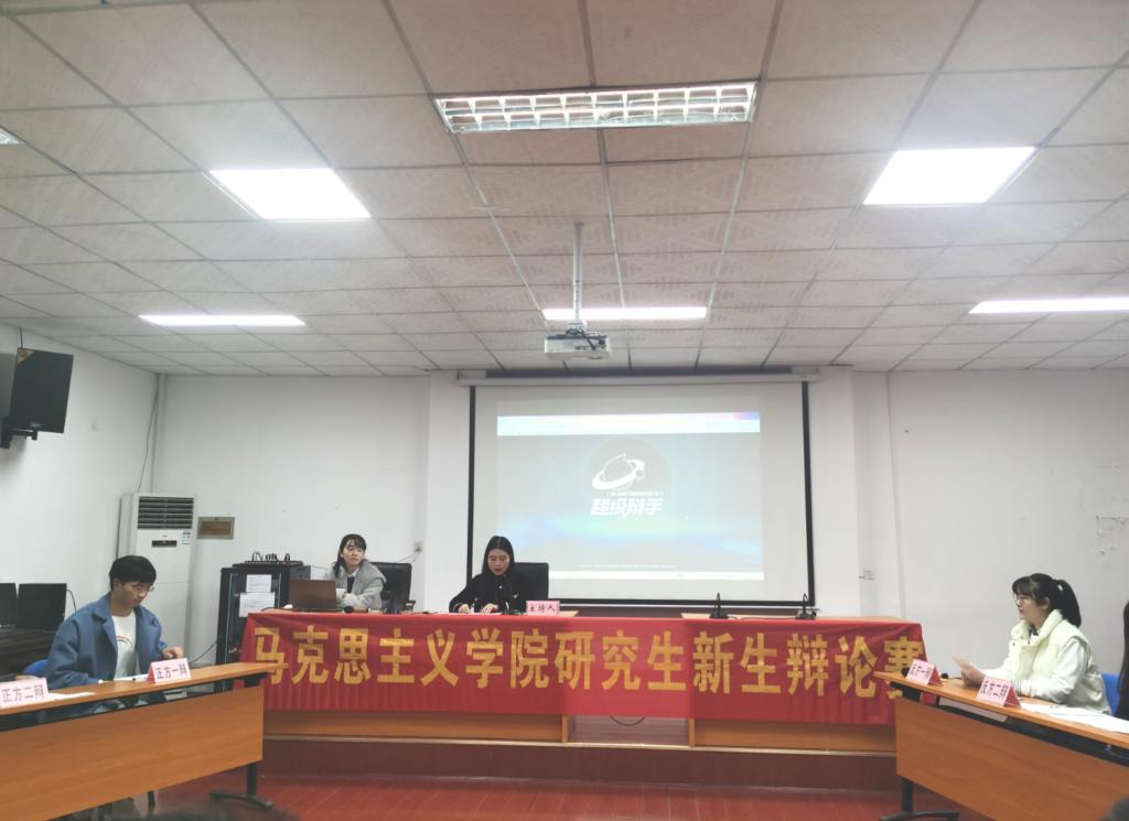 12月14日晚,第十六届研究生文化艺术节之马克思主义学院2021级新生辩论赛在金盆岭校区举行。此次比赛邀请到了学院党委书记易显飞、副院长唐俊、陈方芳老师、黄伟老师、辅导员曾蓓担任评委老师。2021级全体研究生观看本次比赛。