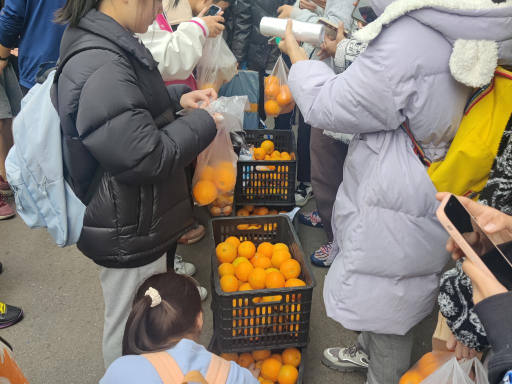 能动学院学生会成员在云塘甘怡园食堂门口、金盆岭西苑食堂门口分早晚两个时间点组织进行售卖。在为期两天的销售活动中,能动学院云塘点共售出580斤,金盆岭点共售出300斤,成绩喜人。在我院摊点设立处,人头攒动,购买者络绎不绝。负责组织的同学早早搭建场地,将物资准备妥当;负责宣传的同学卖力解说,并为顾客贴心的备好了购物袋;负责称量计数的同学也马不停蹄,片刻不休;负责打包的同学将脐橙切块、为顾客装盒,以及为有需要的同学送货上门。同学们分工明确,各司其职,忙中有序,为消费帮扶营销大赛出自己的一份力。