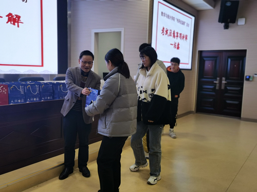 学院党委书记邓崛峰向全体考研学子做指导讲话。他向所有学子提出“三预”:“预期”“预备”和“预祝”。希望全体考研学子明确个人规划,做好心理预备、资料准备和个人安全防护,以积极心态应对此次考试,同时预祝全体考研学子成功上岸并取得好成绩。会议结束之际,由出席的领导老师向全体考研学子发放一一温暖福袋。暖身贴、暖足贴、暖心祝福卡片等等,件件贴心的礼物,句句真切的话语,都是学院对所有考研学子最真挚的爱与祝福。