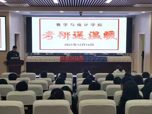 12月16日,数学与统计学院在理科楼A200顺利举办“考研送温暖”活动,为即将考研的学子们带去一份温暖、增添一份动力。学院党委书记邓崛峰、统计系党支部书记杨鑫、学工办老师刘晓丹出席,年级辅导员柳映堂主持,2022届全体考研学子参加。