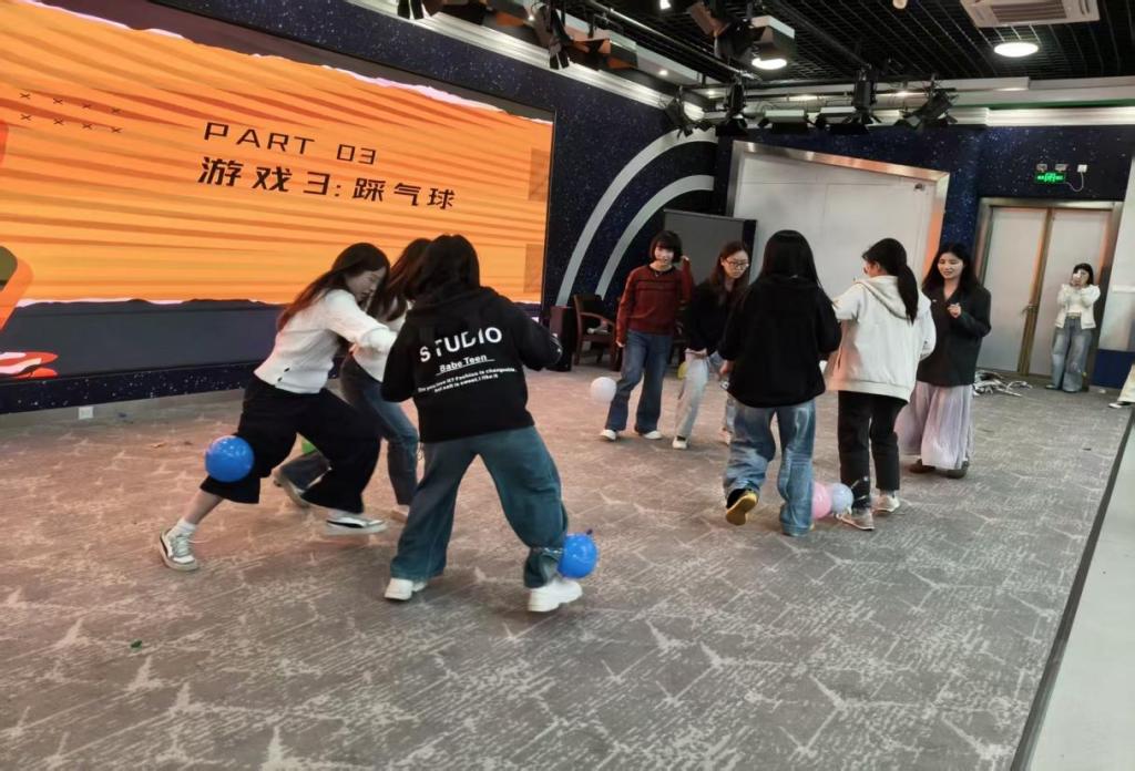 活动以“糖果抽签”分组开场,迅速拉近同学距离。随后的“报纸大作战”环节中,各小组协作完成姓名拼贴与高塔搭建,在默契配合中增强团队凝聚力。结合世界精神卫生日主题,现场还设置了“睡眠知识竞答”环节,同学们踊跃参与,在轻松氛围中学习了健康知识。最后的“踩气球”游戏将气氛推向高潮,展现出青年学子的蓬勃朝气。