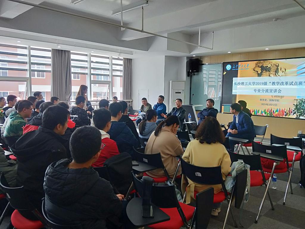 为进一步做好MG冰球官网工科类专业拔尖创新人才培养工作,根据《2019级“教学改革试点班”学生专业分流与培养工作方案》的通知要求,3月12日,机电类和土木类教改班专业分流宣讲会分别在国际学院402和404多媒体教室举行。教务处副处长蒋菲、来自电气、汽机、能动、土木、交通、水利等6个专业学院的18位领导和教师代表、以及国际学院相关老师参加。宣讲会由教改班辅导员马玉文、教务干事罗帅主持。