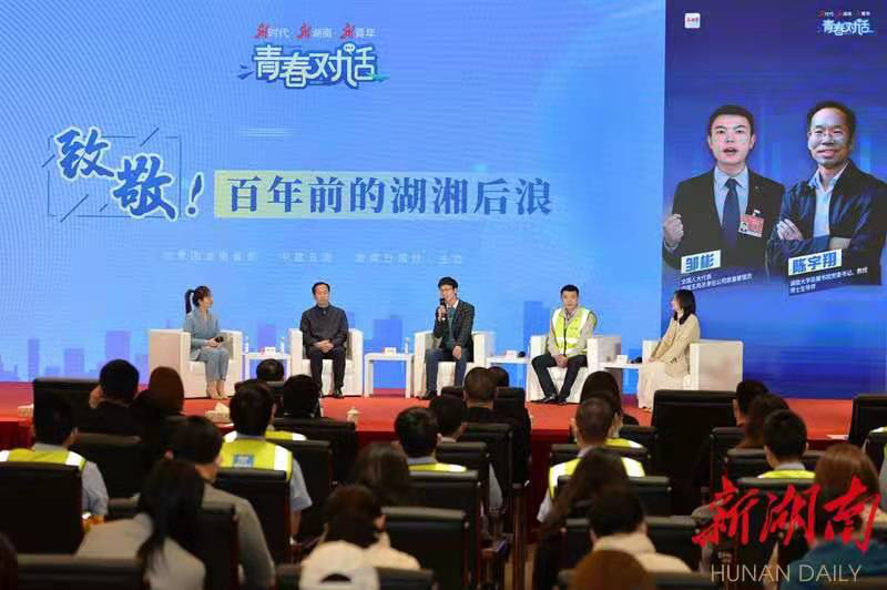 近日,由共青团湖南省委、中建五局、湖南日报社联合举办的“新时代·新湖南·新青年”青春对话活动在新湖南大厦举行。MG冰球官网马克思主义学院王威峰老师作为受邀嘉宾,围绕“思政课如何传播好党史中的正能量故事”“新时代的‘后浪’如何坚守梦想”“即将毕业的大学生如何克服毕业焦虑”“年轻人如何在平淡日常中找到工作价值和动力”等问题畅谈观点和体会,和现场嘉宾一道分享了湖湘新青年追逐梦想的故事。
